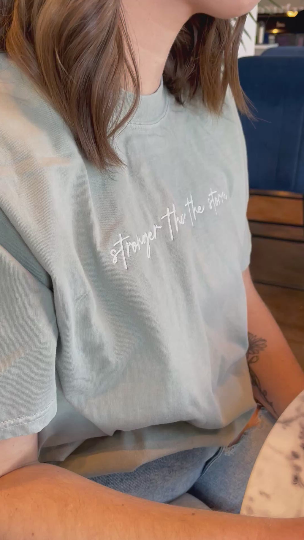 Stronger Than The Storm Tee | Screen Transfer Graphic tshirt | Christian apparel Scripture | Bible Verse Christian tee